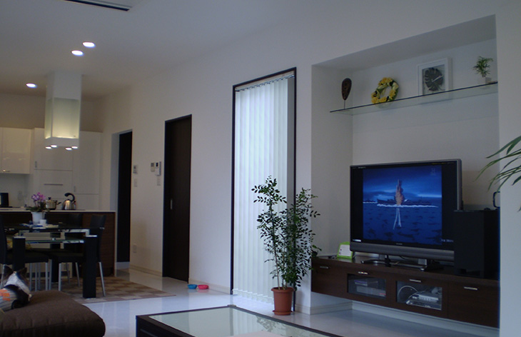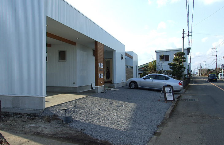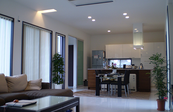 全ての部屋を南側へ配置し、南側全面の開口部が各部屋の開放感を高めています。お客様の要望であった高気密・高断熱住宅として機能し、冬も快適に過ごせる住宅です。