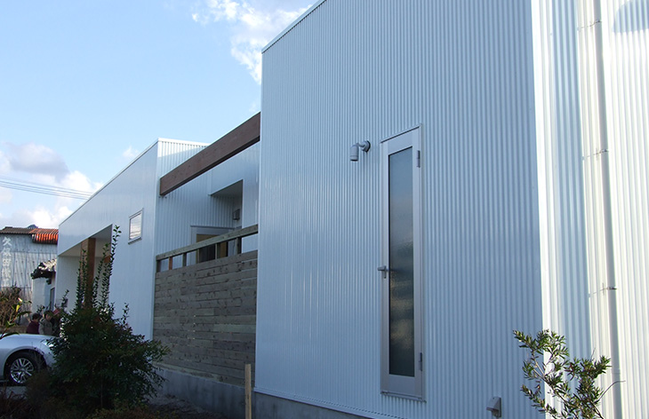 真白な外観が印象的な家。